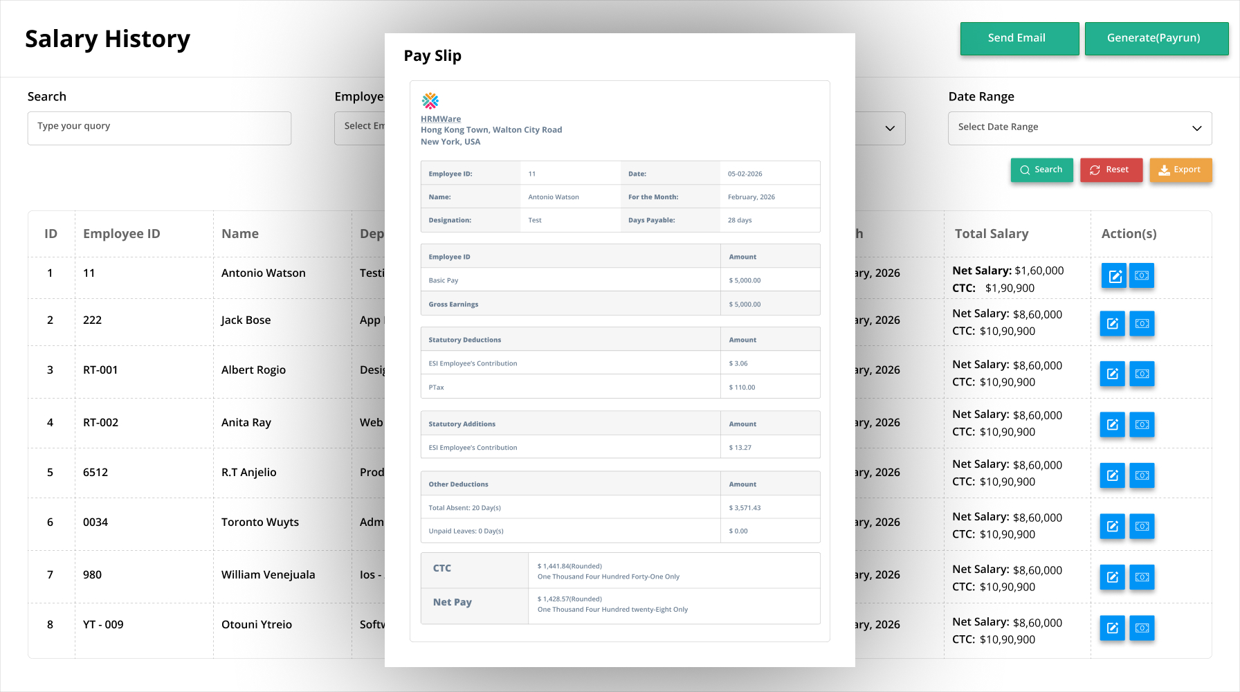All mandatory deductions—government levies, statutory contributions, tax withholdings—are calculated and processed automatically based on current regulations, eliminating the compliance exposure created by manual oversight or delayed regulatory updates.